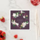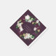 Elegant blomsterkrans, personliga pappersservetter. Kransen har vita och plommonfärgade blommor med rik grönska och förgyllda blad. Mallen har två fält för namn och evenemangsdatum. Bakgrundsfärgen, som visas i plommonfärg, kan anpassas.