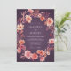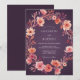 En charmfull krans av persiko- och korallblommor pryder denna design. Ömtåliga blomsterdetaljer skapar en romantisk, målerisk känsla med en djup plommonfärgad bakgrund. Frammanar en varm, eterisk atmosfär för en speciell tillställning.