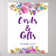 Denna plommonlila trädgårdskort & gåvor välkomstskylt är perfekt för ett bröllop med blomtema. Designen har livfulla magenta-, rosa-, plommonlila- och blåa blommor och ett vackert kraftfullt skrivsrift-teckensnitt. Textraden längst ner på skylten kan anpassas med datumet, brudens och brudgummens namn eller ett kort meddelande som "Tack". Designad med omsorg av Miriam på Fresh & Yummy Paperie. För koordinerade föremål besök min Zazzle-butik: