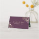 Elegant, modern, juveltoner plommonlila, gul och smaragdgrön bröllopsplatshållare med förgylld blomsterbroderi och enkel kalligrafi.