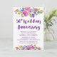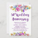 Det här plommonlila trädgårds-inbjudningskortet för 50-årsjubileum är perfekt för en blomsterinspirerad jubileumsfest. Designen har ljusa magenta-, rosa-, plommonlila- och blåa blommor och en vacker, fet skrifttyp. Baksidan har en blomsterkrans.