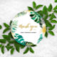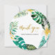 Chic kort med en vattenfärgad tropiska utandning och söt gula blommor i handflatan med tack. Detta vackra kort är en del av vår insamling av bachelorette helg och är också perfekt för många tillfälle, eftersom det tack som ni ger är en redigerbar text.