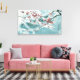 Blommarna av rödplommon ser ut i silvret snö. Med många plommonblommor sprider sig grenar genom bild och bär även doften till luft. Sväljer fluga förbi, berömmer blommornas skönhet och förmedlar budskapet om det kommande vår. Olika färg i snö täcker bergen, inklusive turkosa blått och rent mjölkaktigt vitt, båda i motsats till den ljusröda blommarna.