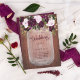 Perfekten för land boho bröllop, dessa inbjudningar till den orustiska blommigten har en bukett av blommor från plommon och ljusblommor från lavender-rosa ovanpå en mason burk med den viktiga texten inuti. String ljus dekorerar mönstrets överkant med en bakgrund av rustiskt trä.