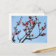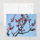 Ett fotografi av ömtåliga rosa plommons blossom mot en vinterblå himmel i Tokyo, Japan.
