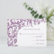Lila Damask Swirl Bröllopbjudanden Lila Grape Plum Bröllop Response Cards, Silver metallic papper.