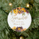 Plum Gult Blommigt Guld Kalligrafi Spara datum Julgransprydnad Keramik