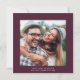 Elegant bröllop sparar datuminbjudan med en vattenfärgad bukett av plommonpeonier och indigo blåa blommor med ett foto på baksidan. Om du vill ha en mer avancerad anpassning av den här designen klickar du på UTTON VERKTYG. Matchande objekt är också tillgängliga.