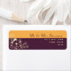 Modern, elegant, jeveltoner gult och plum lila bröllop återvändandeadressetikett med gyllene guld blommigt snöre och modern kalligrafi.