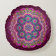 Elegant runt accent dekorativ kudde utfört i plommon, med en färgstark mandala, i mitten.