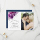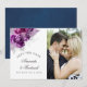 Mörk plum lila ro och silver glitter-fotokort för tropisk blad bröllop spara datum med marin blå vattenfärg tvättar omvänt.