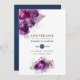 Mörk plum lila ro och den tropiska bladbröllopsinbjudan i silver med en marin blå vattenfärg tvättar bakåt.