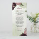 vacker rosa och plommons lila, burgundblommor, grönt botaniskt bröllop meny.