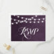 Chicens moderna sommarsvarets vykortsdesign med en enkel elegant glödande sträng ljus som hänger över överkanten och en klassblandning av modernt och kalligrafiskt skript typsnitt på en utskriven bild av vattenfärgen struktur. En enkel och snyggt, perfekt till sommaren! Klicka på knappen CUSTOMIZE IT för att anpassa typsnitt, flytta texten och skapa din egen unika inbjudan av typen one-of-a-natura-modell.