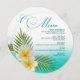 Vackra, exotiska blommor från Plumeria och fronder från handflatan träd förbättrar denna sommar, runda middagsmeny. Om du har frågor eller vill ha andra objekt med den här designen, kontakta: cheryl@cheryldanielsart.com. "Plumeria Beach" av Cheryl Daniels © 2015.