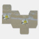Den här stranden har en gult och vit frangipani/plumeriablomma på sanden. Gult och vit blomma med strandbakgrund elegant inramad med en vit ogenomskinlig gräns-bakgrund. Denna populära tropiska hawaiiska blomma är perfekt för ett turistbröllop. Elegantens favoritboxdesign för bröllop med modernt inslag. Det finns också möjlighet att matcha bröllopsinbjudningar och andra artiklar i kontorsartiklar.