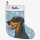 Lycklig dobermanstrumpa som skräddarsy lätt med din egna hund namn! Denna version kommer med naturligt diskettöron.