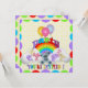 Ljus och Cheery- gult gingham med regnbåge som omger färgaden - ett puffmoln med plockdjur som alla har roligt- den lilla pluslammen i mitten med dess party-ballonger. Anpassade och kan användas för pojkens eller flickans födelsedagsfest. Här är det matchande kuvertet:
