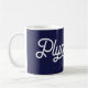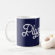 Det här kaffet mugg har texten Plymouth, Massachusetts i ett vitt nautiskt teckensnitt med stjärnfiskaccenter. Baksidan har en linje mönster av svält och sanddollar. Bakgrunden är marin blå, men kan ändras till valfri färg. Perfekt för infallsvinkel, kustdekoration eller nautiska tema.