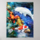 Kort färgad fiskens simma genom vatten i en trädgårdsdamm, är Nishikigoi (koi) sympatisymboler för kärlek. Poster/skriv ut.