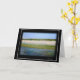 Ett blankokort med originalfotokollage som skildrar en surrealistisk strandscen, Cascade-bergen i snö, havs och himmel.