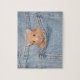 Syrian Hamster i fickan på ett par av denim Blue jeans gullet pussel