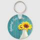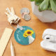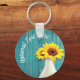 Teckade solblommor över en rostfri, vävd träplank som är målad i havsblått glas. Anpassa till dina önskemål!