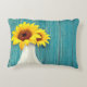 Teckade solblommor över en rostfri, vävd träplank som är målad i havsblått glas. Anpassa till dina önskemål!