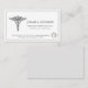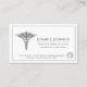 Ett minimalt affärskort med en medicinteknisk adueussymbol på ett enkelt svart och vitt ensidigt kort.