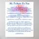 Vi saknar våra husdjur när de har lämnat oss och begett sig till Regnbågsbron. Denna hyllningsdikt är tillägnad varje husdjur som man haft fördelen att ta hand om. Den kan hängas som en del av ett minnesmärke för husdjur eller placeras i en läkares adjö-rum.