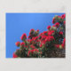 Fotografi av en pohutukawa träd i bloom mot blå himmel