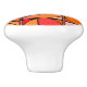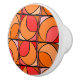 Poignée en céramique de style seventies , décorée de formes abstraites rondes de couleurs rose et orange . Pour une décoration 70' et colorée.