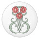 Poignée en céramique de style Art Déco , représentant trois fleurs roses entrelacées de vert .