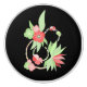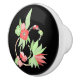 Poignée en céramique ornée de fleurs rose et vert pâle sur un fond noir