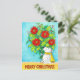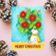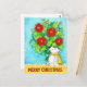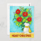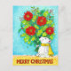 Skicka den här söta polarnas björnkort för att önska vänner och familj ett God jul. På högerna av detta kort håller en polar en stor bukett av röda Poinsettias, en traditionell julblomma som ofta används i blommigtens dekoration på vintern. Den lilla björnen bär en skarp gult, försluten med en enkel knut i baksidan av nacke. Han står framför en blå svart grund och på en gult blomma som skrivs i hand skriven brev "God jul". Brev är brunt. Små vita snöflingor är spridda över målningen.