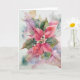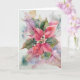 En vacker vattenfärgsbild av en poinsettia-växt visar vibrerande röd och grönt löv, accentuerad av mjuka beröringar av rosa och vitt. Bakgrunden smälter in i mjuka pasteller, vilket förbättrar den känsliga och festliga sammansättningen.