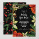 Vackra poinsettier, bär, orange och evergreen grenar svart med uppgifter från party i chic, vita bokstäver, dessa inbjudningar till julfesten är perfekt för ert särskilda tillfälle. MATCHING-objekt i vår samling.