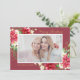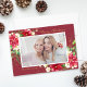 Elegant God jul-fotohälsningskortet har vågrät foto med en djup klarröd bakgrund med vackra rödfärgspätteblommor, vita blommor, grönt löv, bär och grenar. En samordnande blommigt arrangemang går bakåt på kortet. Anpassa med ditt val av hälsning och din familj namnteckning.