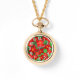 Denna kvinnoklocka har en juldesign av poinsettias som är spridd runt fält i grönt rand.