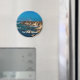 Scenalmagnet har dagsljusfotografi av kusten och berömd Point Arena Lighthouse, Mendocino County, Kalifornien - på svart bakgrund.