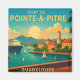 Affiche rétro illustrant le port de Pointe-à-Pitre en Guadeloupe, avec bateaux, croisière et ambiance tropicale. Un design coloré et élégant, idéal pour une déco murale, carte postale ou souvenir des Antilles françaises