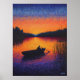 Pointillistisk solnedgång med roddbåt på sjö poster