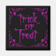 En god magisk gräns med döskallar och "bus eller godis" i giftens lila. För din Halloween-dekoration eller din Halloween fest.