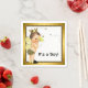 Bumble bee baby shower servetter med söt mörkhårig brunett baby pojke som bär en bedårande humla dräkt på en svart och gul bakgrund med surrande bin. Du kan lägga till texten du väljer för att anpassa denna söta bee baby shower servett.