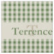 Rutigt kontrollmönstertryck med singelbrevmonogramen och namn, underbar för pojkerumdekor på ett barnrum med en ny, preppy eller nautisk känselförnimmelse. Beige monogrammed tyg för kaki- sandbrunt för många användor. Mönster för stort fjäll. Den stilfulla skogsmarken jord-tonar trädskoggrönt.