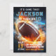 Den här söta, moderna, sportinspirerade barnkalendesignen har en amerikansk fotboll omgiven av blå och orange strålar. Inbjudan kan anpassas med ditt barns namn och andra detaljer som är viktiga för din fest. Det är det perfekta komplementet till ditt barns sportinspirerade födelsedagsfirande. Denna inbjudan är designad för en 10-årsdag, men den kan enkelt ändras genom "Anpassa denna mall" för att passa vilken annan födelsedag som helst!
