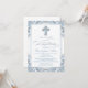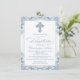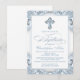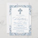 Pojkars blå dopinbjudan med vacker blå diamantkors och elegant skrivstil på en snygg babyblå och vit virvlande bakgrund. Denna eleganta blå dopinbjudan kan enkelt anpassas för din tillställning genom att helt enkelt lägga till dina uppgifter i önskad teckensnitt, färg och formulering.