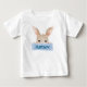 Denna söta påsktröja har en vattenfärgad kanin med en förtjusande rosa rosett som håller i en rosa prickig vimpel. Personliggöra med ditt barns namn. Fungerar bäst på vit eller livfull tryckoption.