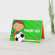 Sportig modern grafisk pojke med fotboll efter fest tackkort. Personifiera detta kort med det tackmeddelande du väljer. Originaldesign av Sarah Trett.