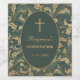 Den här elegantens bekräftelsedesign med vintage luft har en vintage guldfärgad ram med spiralande guld-haltig löv och några få stelblommiga dekorationer på mörk grönt bakgrund. Texten är innanför en oval med gräns och har en kor guld över den. Pojken namn är skriven i ett elegant kalligrafiskt skript. All text kan vara personlig och ha ett gyllene färg som liknar dekorationerna guld i ram. Bakgrunden med sina dekorationer i elegant på mörk grönt kommer från en vintage bok-täckmantel som av Albert Angus Turbayne är bindande för bok "Damen i guld" av Sjö Walter Scott, som publicerades 1898.